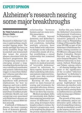 Philadelphia Inquirer article by Nikki Schultek and Dr. Brian Balin. “Alzheimer’s research nearing some major breakthroughs” December 2024